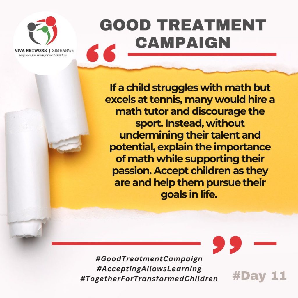 On Day 11 of the Good Treatment Campaign, we reflect on a challenge many parents and caregivers face: how to balance a child’s strengths and passions with areas where they may struggle. Too often, society places greater value on correcting weaknesses than on nurturing talents, but true acceptance involves doing both with love and wisdom.